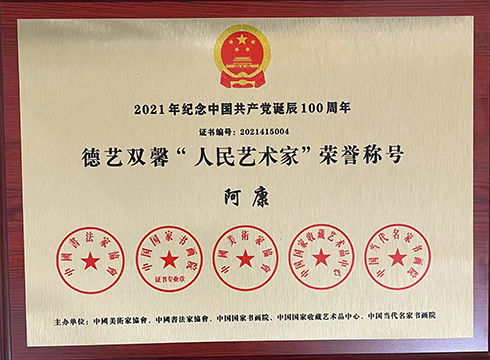 阿康,号师珍,耕雪堂主人,1957年生,1990年毕业于北京齐白石艺术函授学院,1997年考入中央美术学院国画系深造,2016年深造于清华大学美术学院高研班。谨拜齐白石入室弟子杨秀珍先生,齐白石四子齐良迟先生为师。国家高级美术师,国家一级美术师,国家高级书法师。现任:齐白石艺术研究会理事,中国美术家协会会员,中国书法家协会会员,世界工商总会书画工作委员会副主席,世界工商总会对外工作委员会副秘书长,世界艺术家联合总会理事会常务副会长,北京浩天国展书画院副秘书长,中国书法艺术家协会理事,中国美术艺术家协会理事,北京燕京书画院一级美术师,山西省美术家协会会员,山西省书法家协会会员,英格兰皇家艺术基金会永久学术顾问,日本国桂门书道研究会顾问。艺术活动曾在中央电视台、中央人民广播电台、人民政协报、人民代表报、美国亚美报、新加坡联合早报、马来西亚星洲日报、香港大公报、成报、澳门华侨报等新闻媒体做了专题报道。特邀为“中华国礼中心特邀书画名家”。书画作品多次在省、全国及国际性大展赛中入选并获奖。清华美院结业师生书画作品展活动中,作品获奖并评为优秀学员代表在大会上发言!1992年以来书法作品参加中日友好文化交流展荣获“桂门大赏”;国画山水作品《山乡秋色》入选文化部、故宫博物院、荣宝斋主办的全国文化系统中青年书画展在中国美术馆展出;花鸟作品入选《中国当代名家书画国际大展》在美国纽约展出;书画作品入选中国书画精品赴加拿大展览;书法作品在中国文联、中国书法家协会、中国美术家协会等主办的中国国际文学艺术博览会中获特别等级奖;花鸟作品《红冠图》入选韩、中、日书画展览,在韩国美术馆展出并收藏;中法文化年为法国总统希拉克赠送国礼题字;应全国两会邀请为人大代表、政协委员现场书画;应邀在人民大会堂参加首都各界纪念毛泽东诞辰112周年座谈会;2005年应邀在新加坡和马来西亚首都吉隆坡成功举办个人书画展。花鸟作品两幅参加“2007年中国书画迎春展”,在全国政协礼堂展出;花鸟《鸡冠花》参加纪念党中央进驻西柏坡60周年《新中国从这里走来》名家书画摄影展;花鸟《畅游图》荣获“2008迎奥运”美术、书法大展特邀金奖并收藏;书法作品唐诗一首被西安碑林博物馆永久珍藏,应中国妇女发展基金会邀请参加《心系灾区》中国百名书画家爱心奉献义卖作品全部捐赠;国画作品参加上海世博会,获“金手指奖及书画事业特殊贡献奖”殊荣。2014年应邀赴韩国首尔、日本东京、美国纽约、华盛顿、洛杉矶国际文化交流书画作品深受外国友人好评并藏。2015年书画作品在纪念中国共产党成立95周年活动,被中国邮政发行邮册,同年纪念中美建交37周年活动,书画作品被美国集邮集团发行邮册。2018年6月书画作品应邀参加第二届世界华人书画家协会作品展在日本举行,国画作品获铜奖。2019年荣获全国两会重点推荐“人民艺术家称号”。2019年建国70周年国画作品被人民美术杂志刊登。2020年8月作品荣获“艺术里的中国一一当代书画艺术大师”荣誉称号。同年被国际名人百科评为“2020中国当代优秀人民艺术家”。
