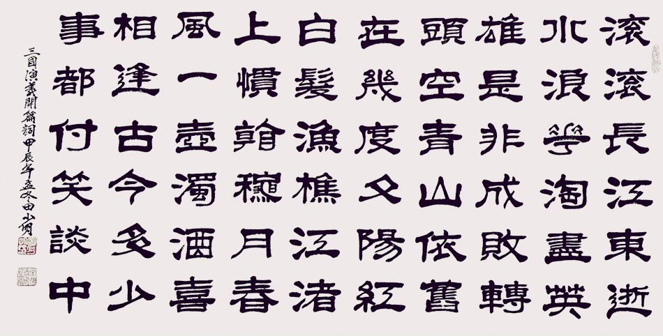 田少明,男,汉族,中共党员,河北定兴县人,现居北京,著名书法家。1960年出生于文化家庭,自幼受家庭耳濡目染的熏陶和影响,酷爱书法艺术,擅隶书。1978年应征入伍,历任连队文书、营部书记、六十五军军政治部和军后勤部文职干部等。