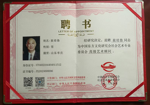 崔培鲁,字也鲁,号鲁芳斋主,1944年出生于山东枣庄市。早年就读于临沂艺校师从著名画家王小古和皮之先,后入中央美院国画系研修班深造。原为山东画院高级画师、枣庄市山亭区政协副主席。1992年应调深圳特区,创办南山画院并出任南山区文化馆馆长。1994年春在香港,刘海粟大师为其葡萄图题写了“气韵生动”的赞语并收为关门弟子。崔培鲁先生潜心于中国画创作五十余年,是当今“承先启后”具有较高影响力的中国画坛领军人物。其代表作葡萄和牡丹等曾被收藏于北京人民大会堂、美国维吉尼亚州国家博物馆及中国驻外大使馆领事馆等众多中外机构。先后出访美国、日本、英国、印度及东南亚港澳等国家和地区举办个人画展和学术交流。相继荣获”国际书画名人成就奖”及“世界文化艺术交流功勋金奖”。作品入编人民美术出版社与中央美院联合出版发行的《中国高等美术院校教学范本·崔培鲁作品》。曾被中国文联出版社推举为《中国艺坛五大流派》之首。亦曾应北京大学之邀主持《百年元培》主题人物画创作。2022年10月被中国非物质文化遗产委员会授予“崔培鲁非遗名家工作室”匾额。2023年8月参加全国丝路艺术大展,荣获“杰出贡献奖”。并被誉为“文化强国·民族艺术家”和“时代标杆·正能量文艺工作者”。2023年底被联合国有关机构授予“金砖艺术家 文化宣传大使”荣誉称号。2024年8月被“央新国际传媒机构”授予“ 荣耀中国——世界文化艺术大师”荣誉称号。近两年相继应邀入编《中国花鸟画史》《世界美术教育史》《中国美术史》《中国书法史》及《中国美术通史》等重要典籍。为纪念中法建交六十周年法国邮政特出版发行《崔培鲁作品邮册》。现为北京大学艺术学院客座教授、香港高等美术学院特聘教授、北京胡润国际艺术品鉴定中心首席专家、中国美术家协会会员、中华名人协会会员、中国和平统一促进会书画联谊委员会委员、中国书画家联谊会理事、中国东方文化研究会高级艺术顾问、全球华人华商联合总会顾问兼书画院名誉院长、第七届全球少年书画大会分会场评委和导师。